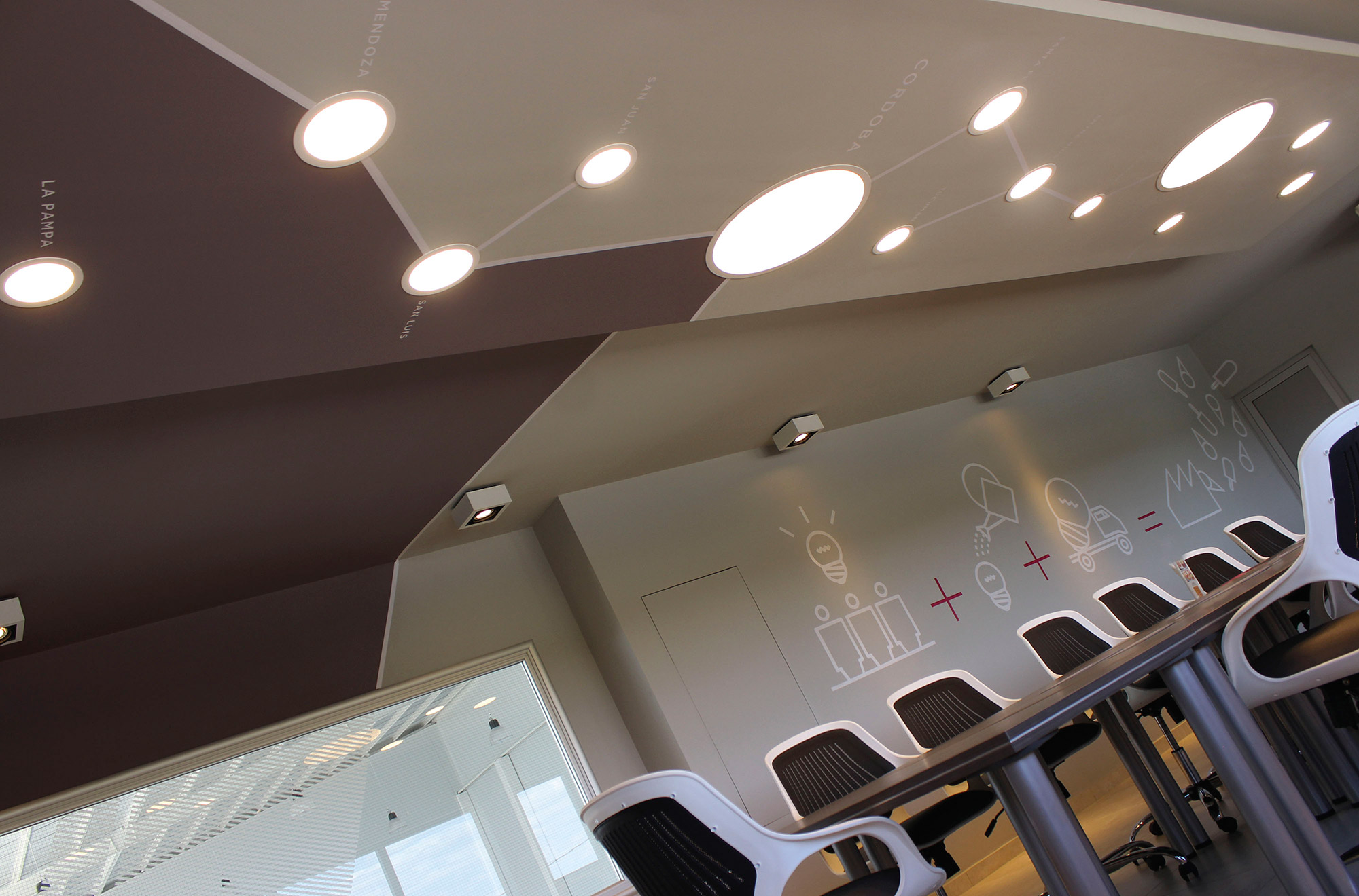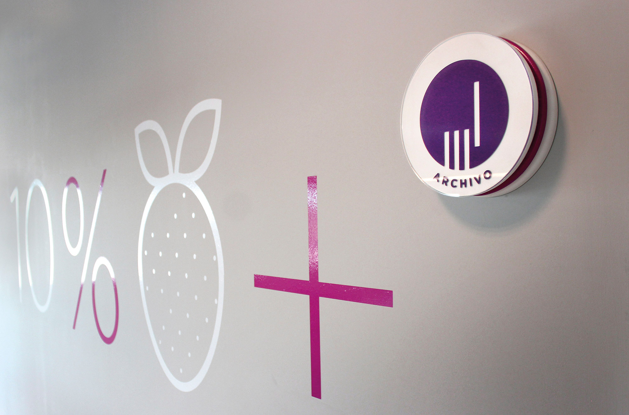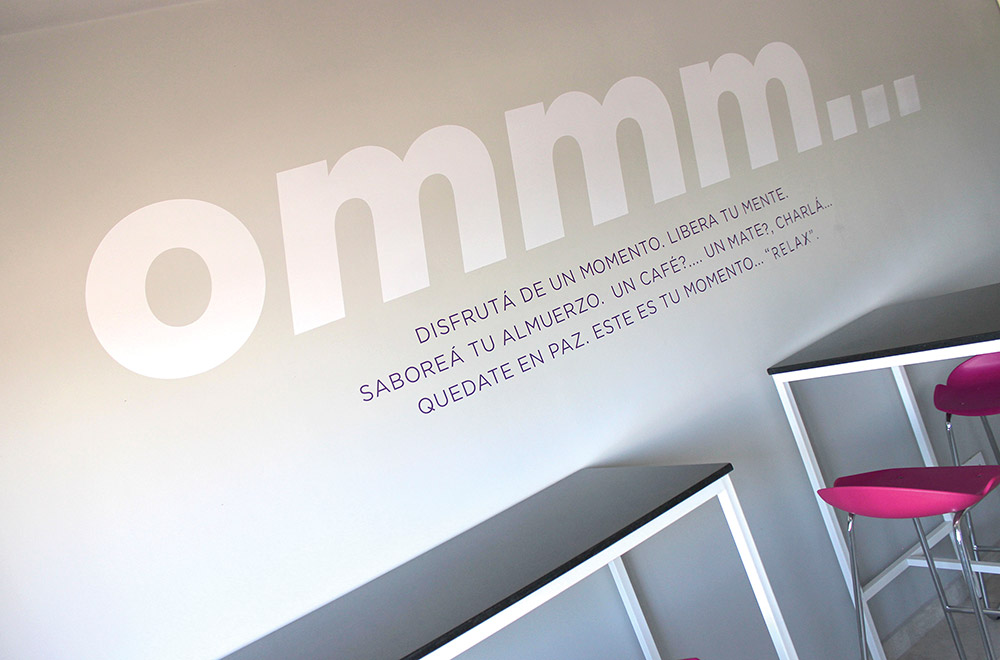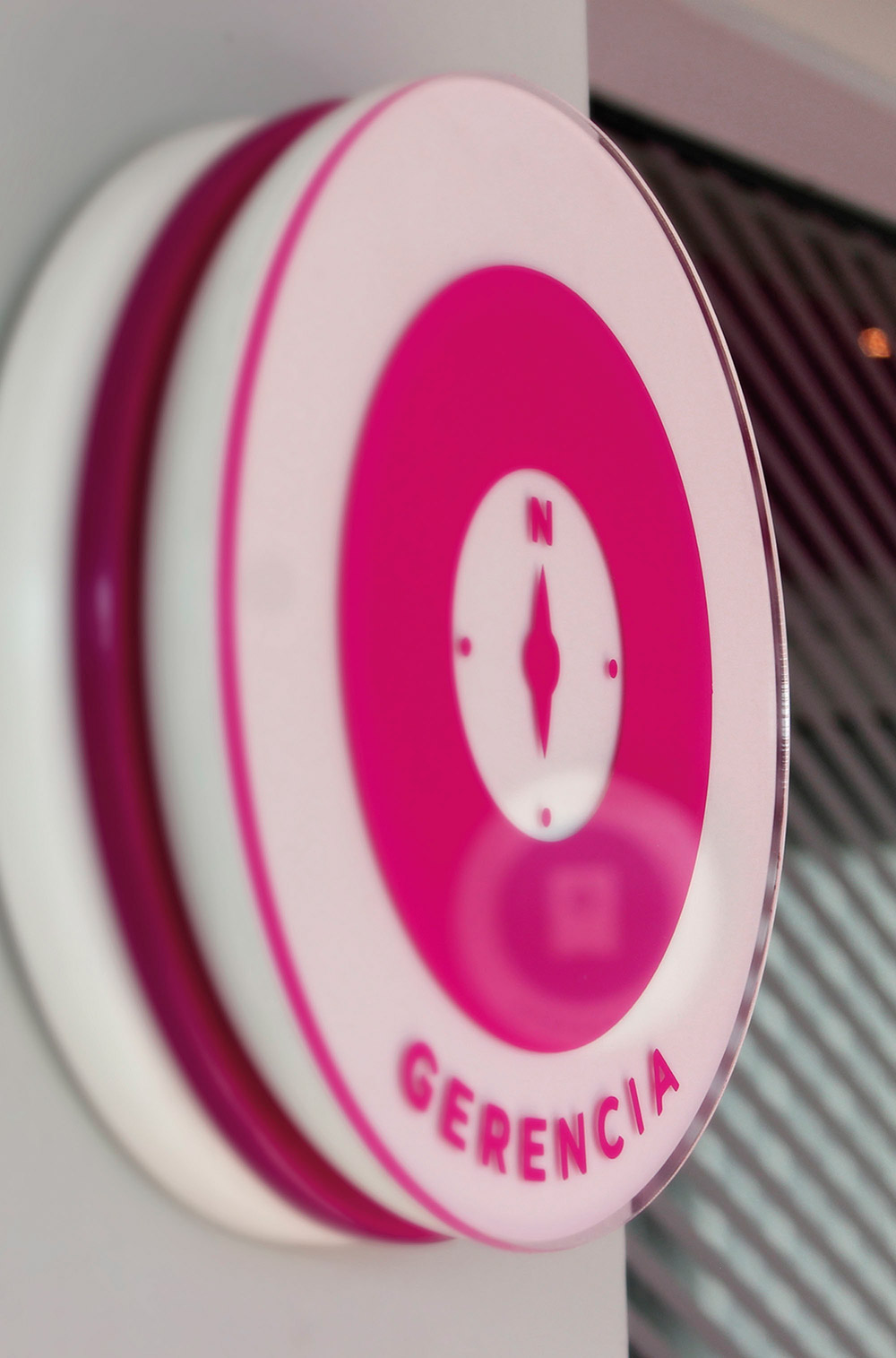Elección de colores para muros, mensajes routeados en distintas salas, diseño de sistema de pictogramas y corpóreos identificativos en acrílico y MDF fueron parte de la arquigrafia en esta nueva etapa de la marca.